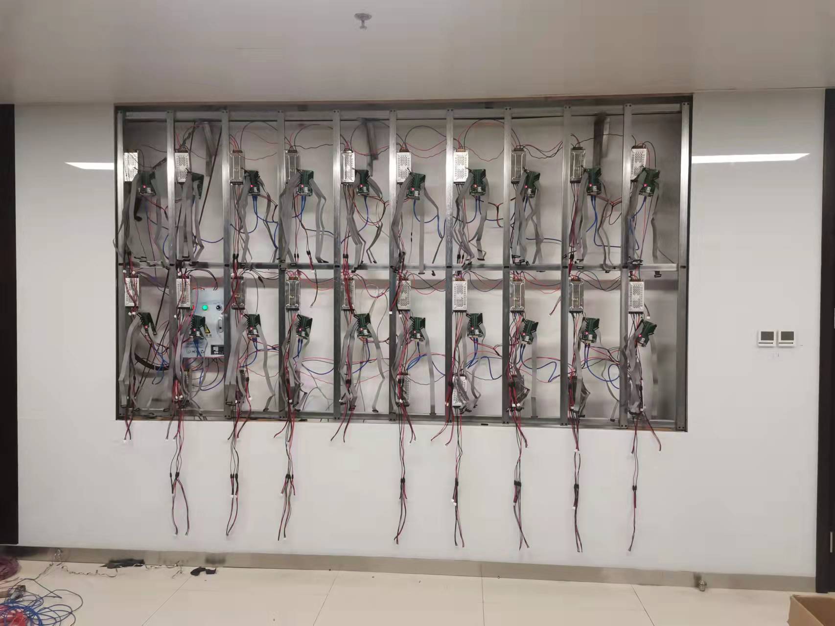 本項(xiàng)目位于鄭東新區(qū)龍子湖河南鐵路投資有限公司8樓會(huì)議室,采用利亞德小間距P1.53顯示屏。安裝方式為掛墻式安裝,在原建筑大理石墻面固定懸掛,顯示屏體采用R、G、B表貼3合一LED芯片,顯示屏顏色一致性好,G刷新率G顯色指數(shù),項(xiàng)目從確定到施工周期為4個(gè)工作日,顯示屏效果得到河南鐵路投資集團(tuán)領(lǐng)導(dǎo)一致認(rèn)可。河南利亞德小間距設(shè)計(jì)特點(diǎn):