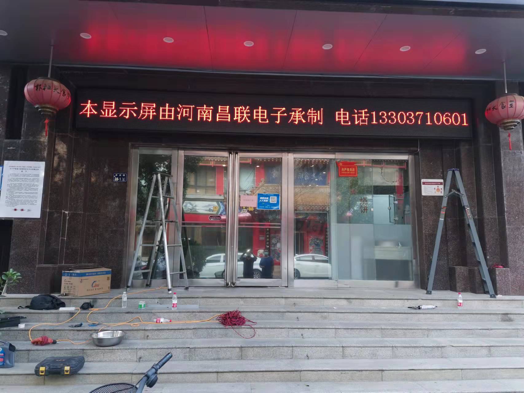 LED顯示屏安裝地點(diǎn):河南日?qǐng)?bào)報(bào)業(yè)大廈食堂門口