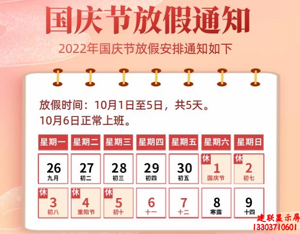 鄭州LED顯示屏廠家關(guān)于國慶節(jié)放假通知