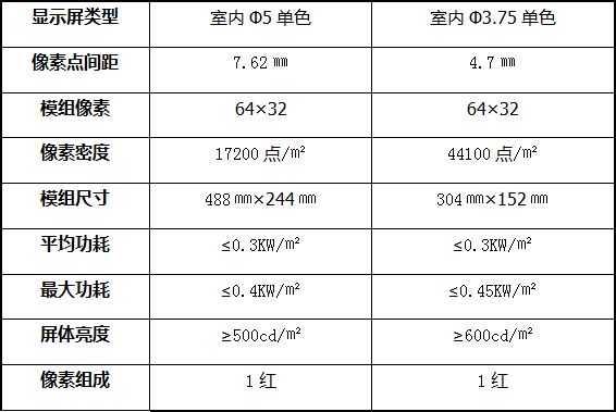 室內(nèi)單色LED顯示屏【技術(shù)參數(shù)】:
